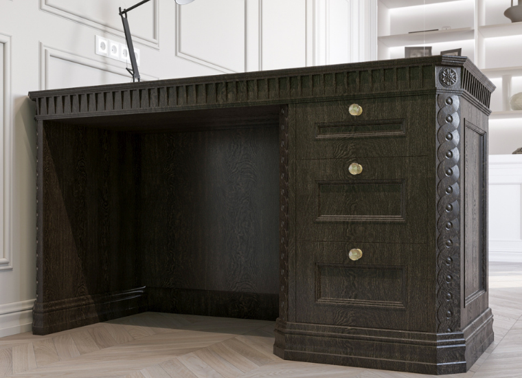 У Casa Verdi кожен письмовий стіл з дерева виготовляється за індивідуальними розмірами та в єдиному стилі з іншими меблями вашої оселі. Ви можете замовити класичний варіант з різьбленням та патинуванням або сучасний мінімалістичний стіл у глянцевому чи матовому покритті.
