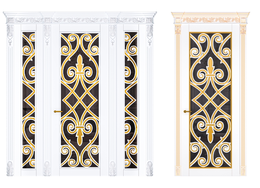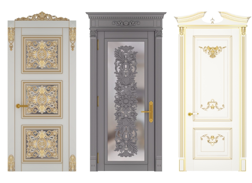 Дизайнерські двері з декоративною короною або різьбленням додають інтер’єру урочистості та елегантності. Такі моделі гармонійно поєднуються як із класичним, так і з сучасним дизайном.
