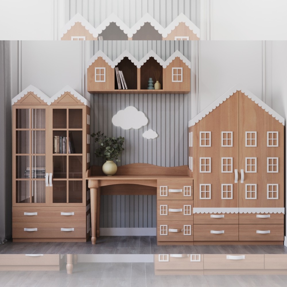 Меблі виготовлені з екологічних, зносостійких і безпечних матеріалів. Світлі базові кольори гармонійно поєднані з контрастними деталями, які додають кімнаті динаміки та сучасного характеру.