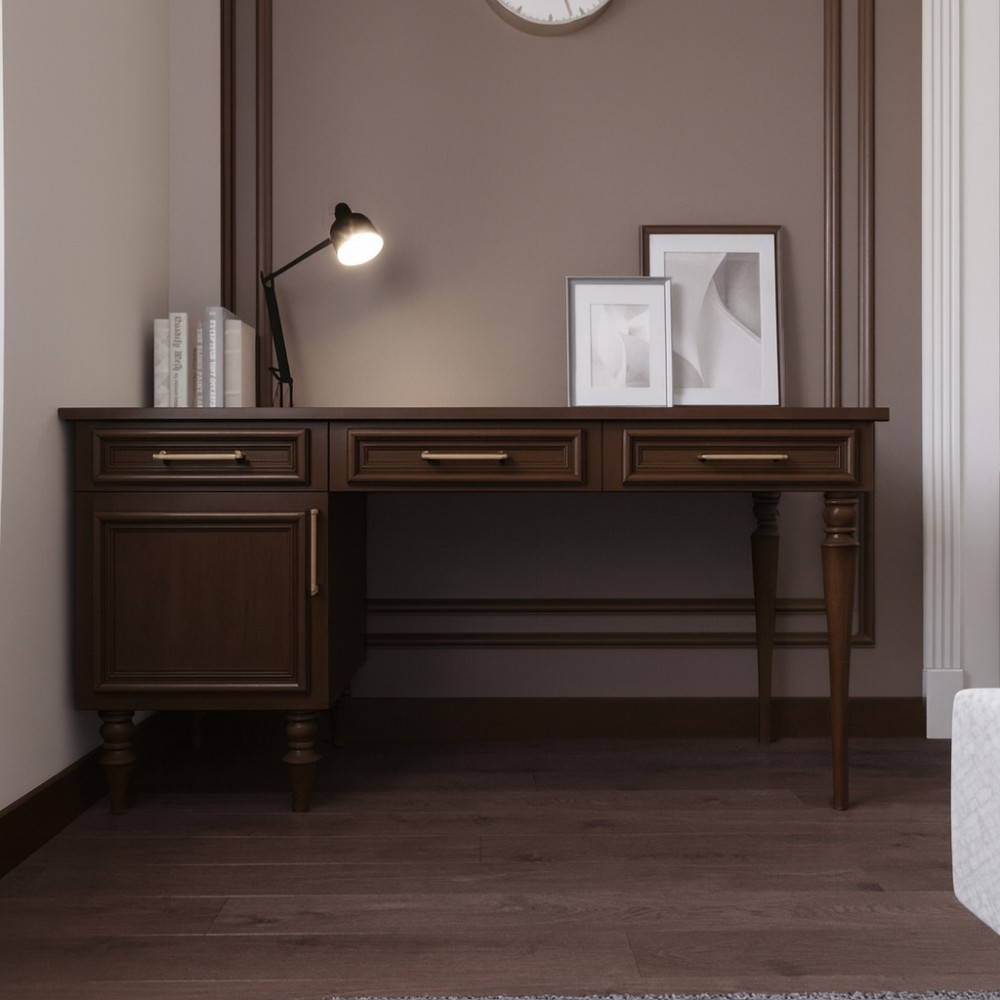 Поєднання естетики та функціональності Письмовий стіл виготовлений із натурального масиву дерева, відрізняється міцністю, довговічністю та бездоганною якістю обробки.