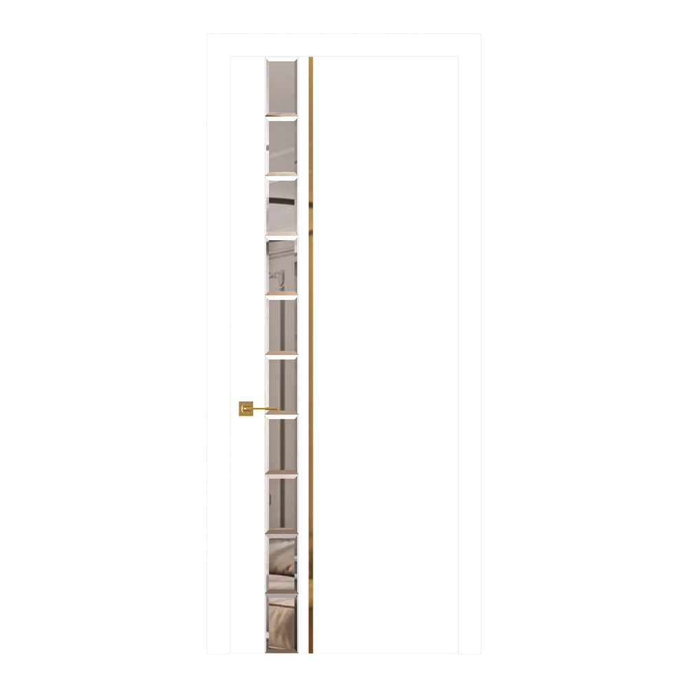 Дверной короб – цельномассивный, без добора, выполняется строго по толщине откоса. Наличник из массива дерева крепится телескопическим методом – без гвоздей.